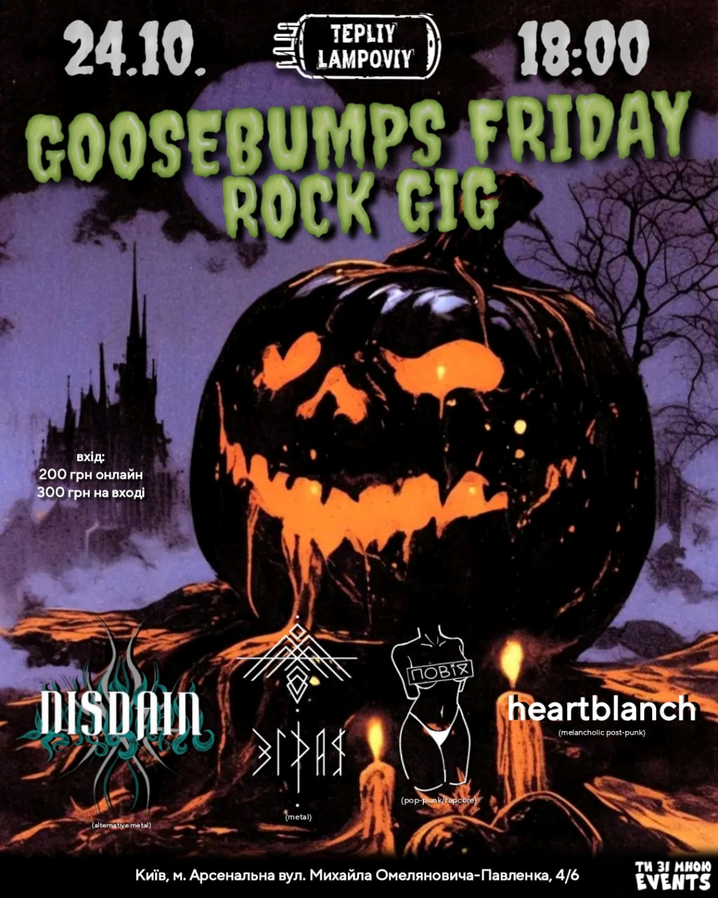 1 листопада Kyiv Kills: Halloween Gothic Party Класична готична вечірка в ретро стилі! Найкращі темні гурти зі всієї України приїдуть цього вечора на свято потойбічних сил. Готуйте наймоторошніші костюми, беріть з собою ваших уявних друзів та приходьте насолоджуватись святом похмурої музики та естетики! В програмі:Violet RaymoorCraize (акустичний сет)Pulse SirenSwoon Baby & CherepMortidoKutzoruIngenti Початок – 16:00 […]